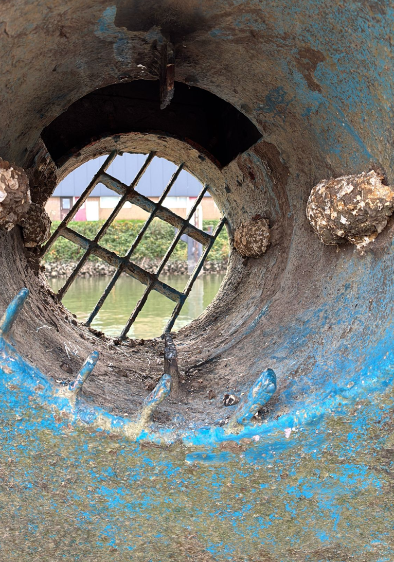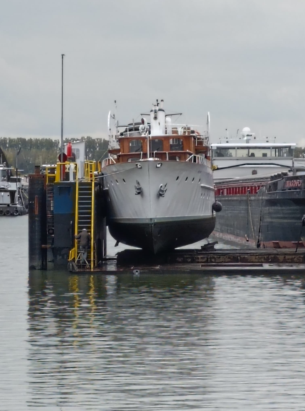 De Piet Hein lag in het dok voor reparatie van de boegschroef. Die is inmiddels prachtig hersteld! Onze handige vrijwilligers timmeren binnenkort nog de behuizing eromheen, en dan is dat klusje helemaal geklaard.